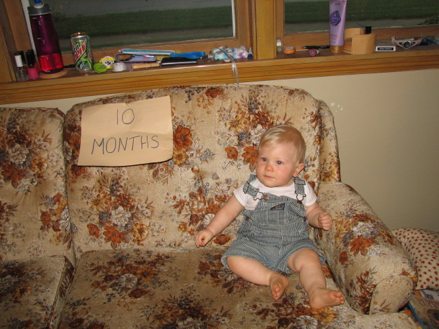 Here are his 10 and 11 month pictures. It is getting a lot harder to get him to sit still for a picture. He is always on the move but loves to show off for the camera!